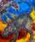 Aucune transition entre une facture picturale inspirée de la renaissance avec ses figures d'une très grande précision et le souffle jubilatoire, la rage colorée, la matière qui creuse la surface, les supports de toile grossière qui reçoivent ces animaux.